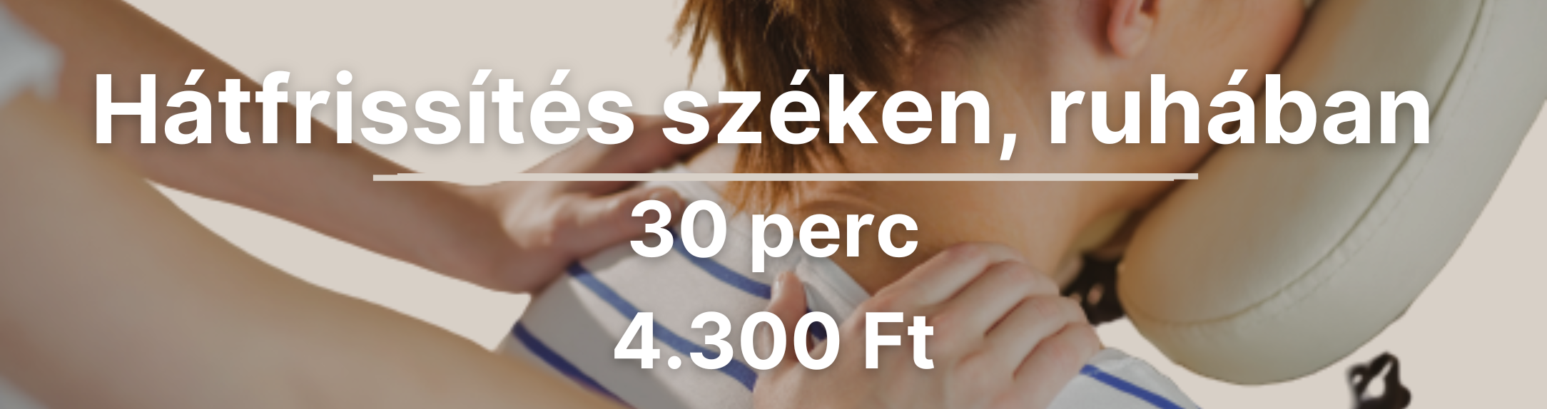 Amennyiben még sosem próbáltad ki a masszázst, ne habozz tovább! Tegyél próbára 30 perces, masszázsszékes kezelésemmel, amelyhez még levetkőznöd sem szükséges!